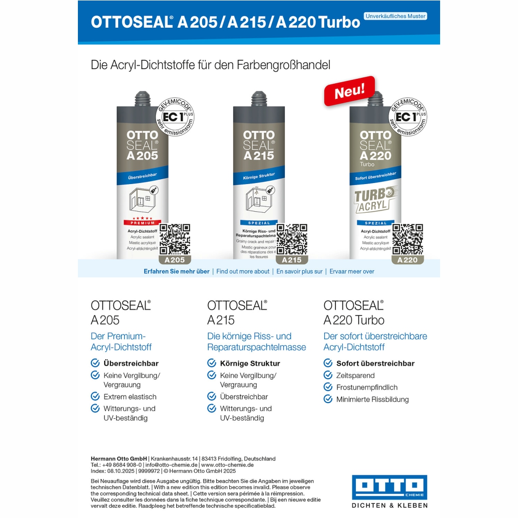 Farbtafel Verarbeiter Ottoseal A-205, A-215, A-220 Turbo