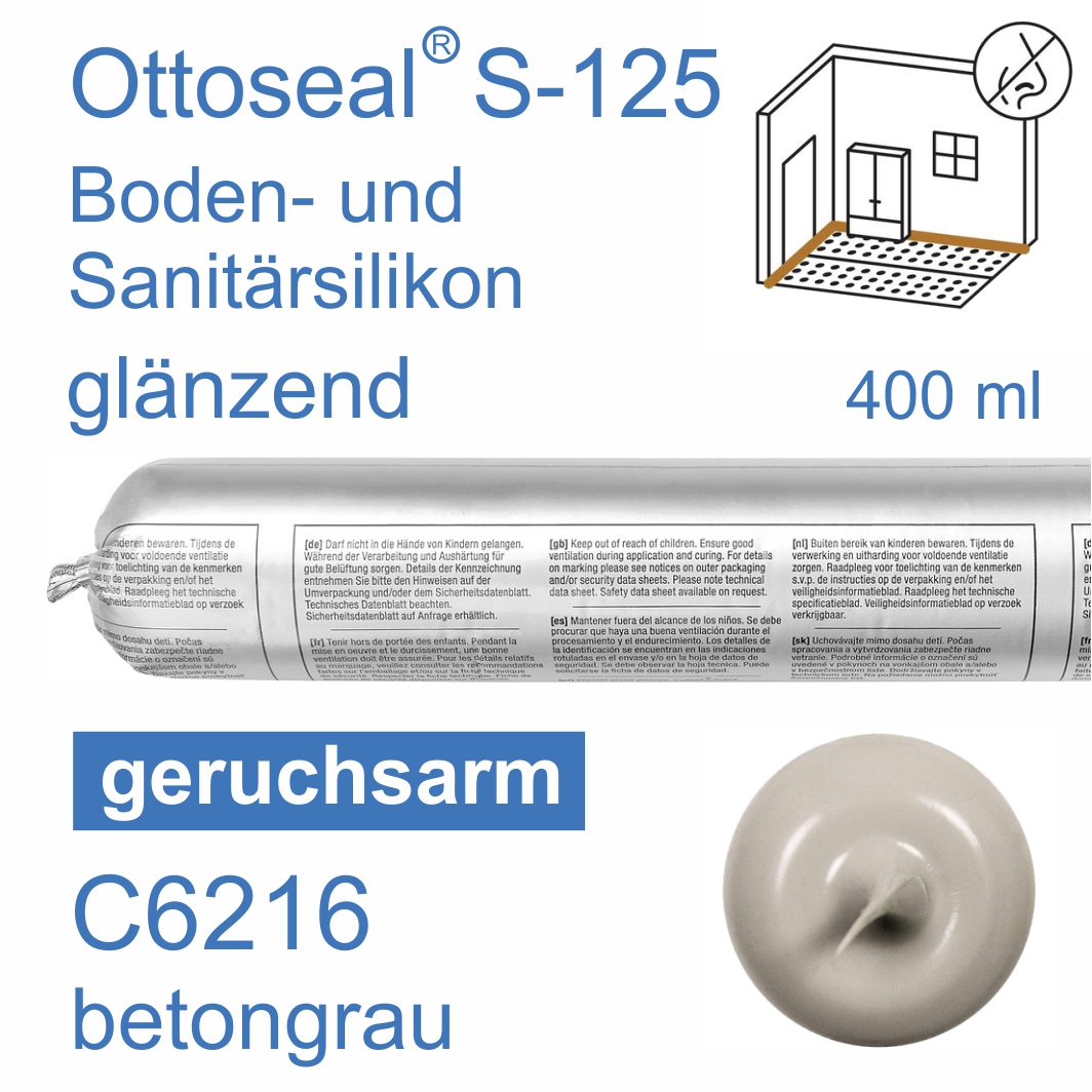 Ottoseal S-125 Boden- und Sanitär-Silikon geruchsarm 400ml C6216 betongrau