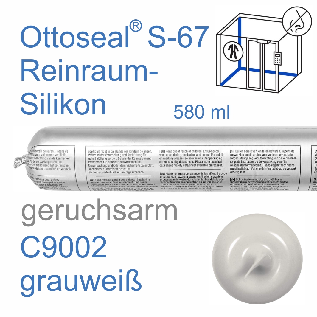 Ottoseal S-67 Reinraum- und RTL-Silikon geruchsarm 580ml RAL C9002 grauweiß