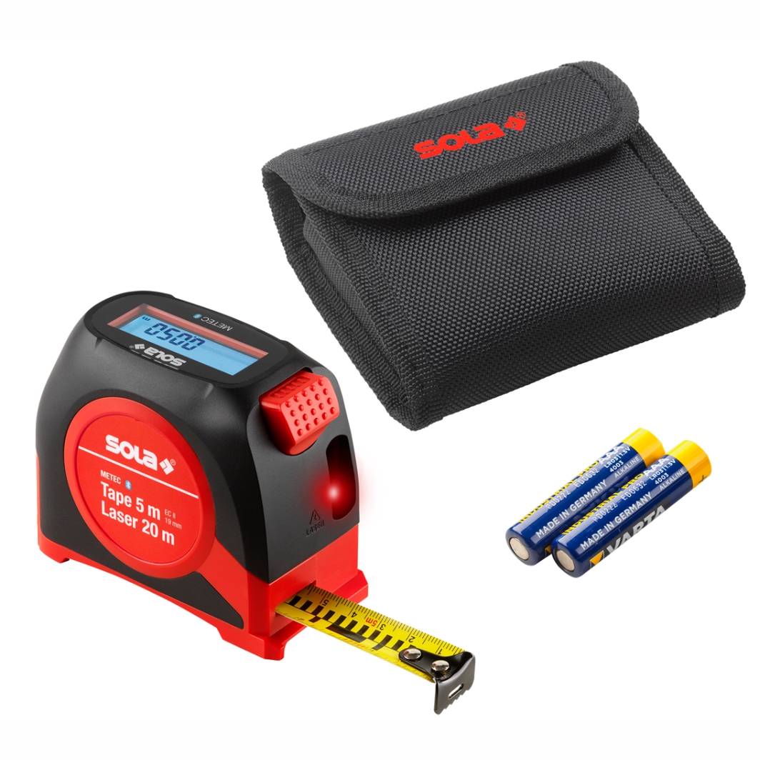 Das digitale Rollbandmaß mit Laser-Entfernungsmesser METEC von SOLA vereint zwei Messmethoden in einem einzigen, kompakten Messgerät. Ob auf der Baustelle, im Innenausbau oder bei professionellen Messaufgaben im Handwerk 13 der METEC liefert präzise Ergebnisse, spart Zeit und steigert die Effizienz. Das robuste Messwerkzeug kombiniert ein digitales 5-Meter-Rollbandmaß mit einem integrierten Laser-Entfernungsmesser mit bis zu 20 Metern Reichweite. Damit eignet es sich ideal für kurze und lange Distanzen, bei denen sowohl Flexibilität als auch Genauigkeit gefragt sind.