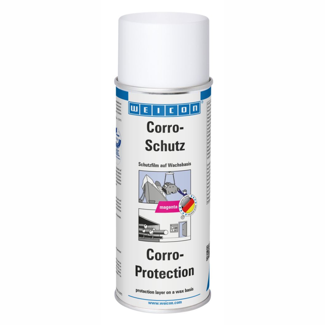 WEICON Corro-Schutz ist ein TÜV-geprüfter Schutzfilm und konserviert Werkzeuge und Präzisionsteile aus Metall dauerhaft mit einer trockenen und wachsartigen Schicht. WEICON Corro-Schutz kann als sicherer Korrosionsschutz von blanken nicht lackierten Metallteilen, bei der Innenlagerung von Werkstücken, als Korrosionsschutz bei Überseeversand und zur Konservierung von Werkzeugen und Präzisionsteilen zum Einsatz kommen. Bei Bedarf kann der Schutzfilm leicht entfernt werden (z.B. mit WEICON Reiniger S).