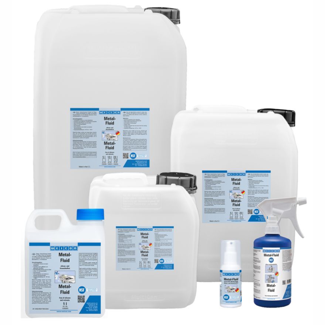 WEICON Metal-Fluid ist ein Pflege- und Reinigungsmittel für matte und polierte Oberflächen im Innenbereich und hat eine NSF-Zulassung. Metal-Fluid pflegt, schützt und reinigt sowohl Metalloberflächen als auch Keramik, Holz, Glas und Kunststoffe. Geätzte und gedruckte Beschriftungen sowie Kunststoffoberflächen und Gummidichtungen werden nicht angelöst.