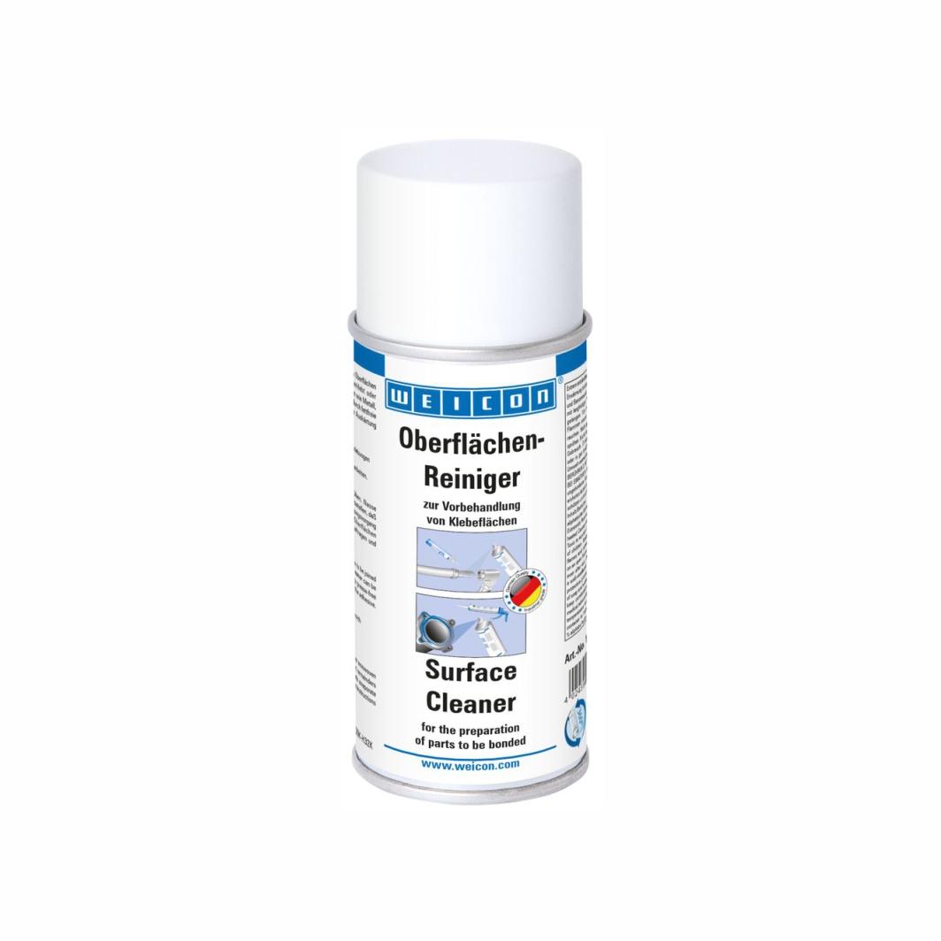 WEICON Oberflächenreiniger wird zum Reinigen und Entfetten von Oberflächen verwendet, die mit WEICON Kleb- und Dichtstoffen verklebt oder abgedichtet werden sollen. Oberflächenreiniger kann auf Werkstoffen, wie Metall, Glas, Keramik und den meisten Kunststoffen eingesetzt werden und verdunstet völlig rückstandsfrei. Vor der Anwendung auf Oberflächenverträglichkeit prüfen. WEICON Oberflächenreiniger kann ebenfalls zum Reinigen und Entfetten von Maschinenteilen im Zuge von Wartungsarbeiten genutzt werden.